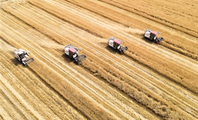 ▲6月6日,山东省胶州市洋河镇临洋村农民在收获小麦。王昭脉摄(新华社发)