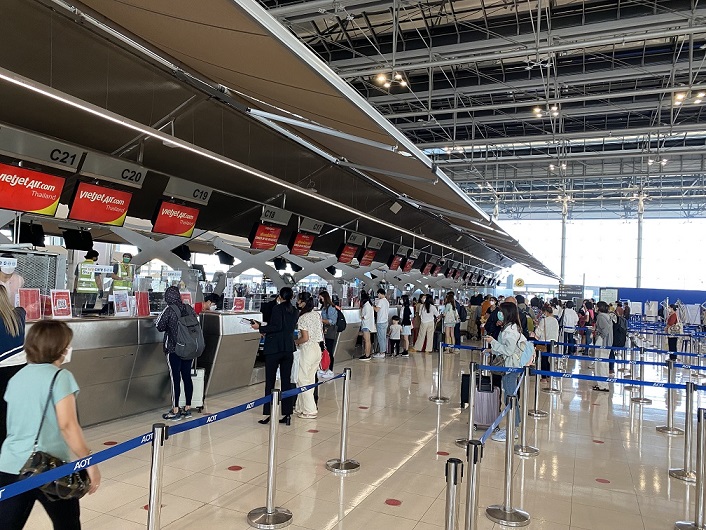 据泰媒报道,自4月1日泰国取消入境前RT-PCR检查,并且开放国际到达C厅后,素万那普国际旅客人数增长 65.97%,达到日均 1.1万人次。 泰国机场公共有限公司(AOT)素万那普机场透露,自4月1日疫管中心放宽入境措施,并取消入境泰国前的RT-PCR检查后,平均每天进入泰国的国际旅客人数达11,623人次,高于3月份的日均国际旅客人数7,003人次,同比增长65.97%。 国际入境航班日均141班,高于3月份的137班,同比增长2.92%。预计此后将有更多国际旅客持续入境泰国。