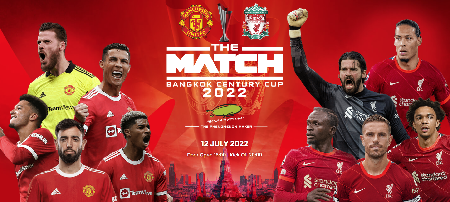 此前,主办方FreshAirFestival有限公司董事长WinitLertratanachai先生就曾透露,将在泰国举行“2022年曼谷世纪杯”,首场比赛就是“双红大战”即曼联队与利物浦队的比赛,这两支顶级球队都将派出多位球员抵达泰国,并在曼谷拉加曼加拉体育场举行热身赛。王嘉尔此次就是作为开场嘉宾被邀请,将带来“RedWorldOpeningLive”的开场秀! |