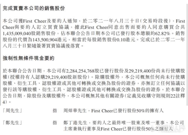 周焯华曾大笔出售上市公司股权,2021年8月31日,周焯华将其持有的太阳国际股份全部出售。 、