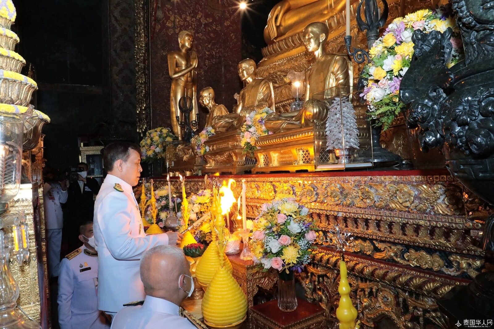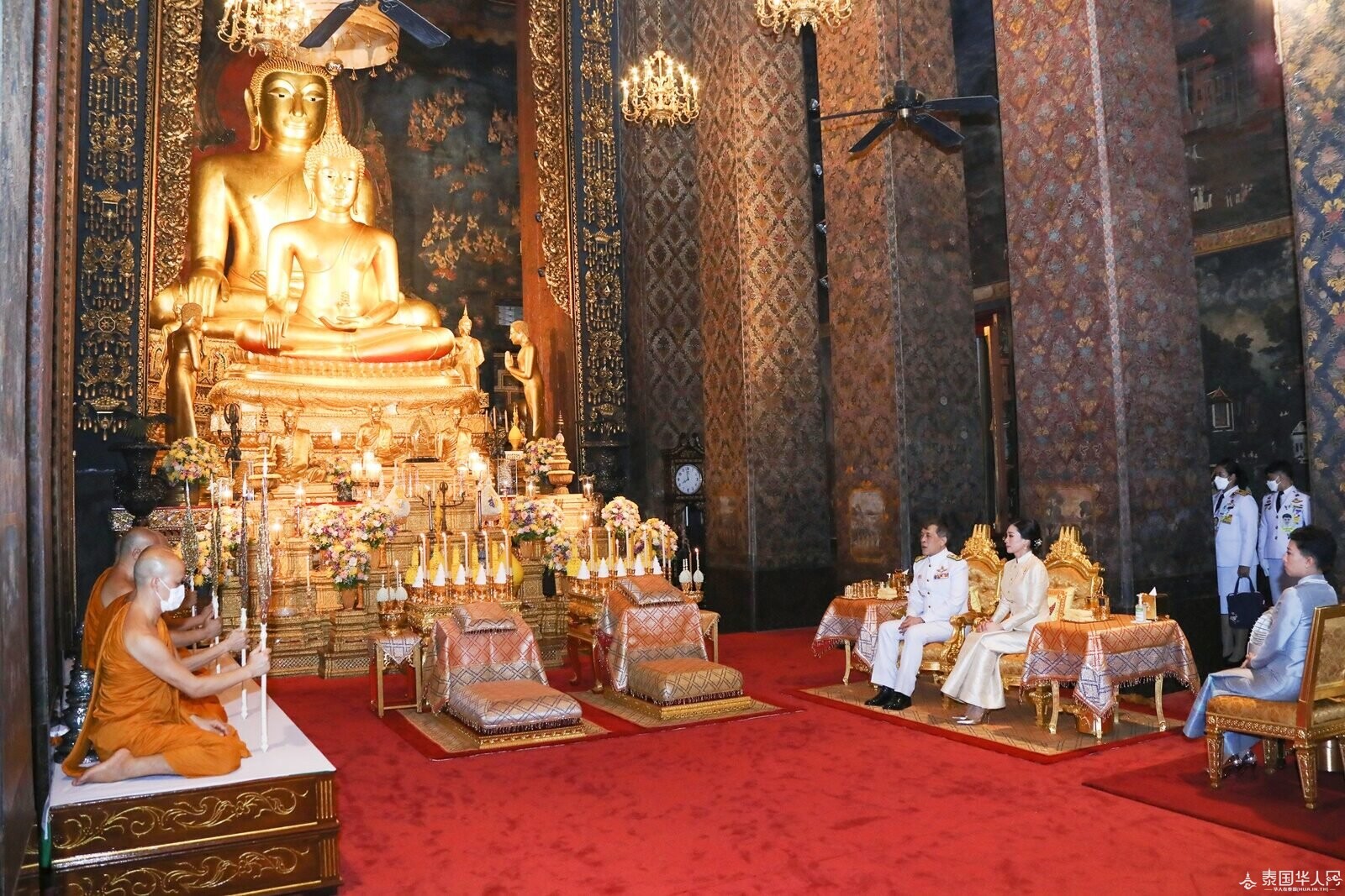 据悉,泰国玉佛换装习俗自拉玛一世时期沿袭至今,每年的热季、雨季、冷季,泰国国王都会亲自前往玉佛寺为玉佛换装,以祈求风调雨顺、国泰民安。