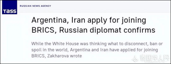 ▲塔斯社报道截图 据俄罗斯《消息报》14日透露,除了伊朗和阿根廷外,沙特、土耳其和埃及也准备申请加入金砖国家。 金砖国家国际论坛主席普尔尼玛·阿南德证实了相关消息。她说:“这些国家都展现了加入金砖国家的兴趣,并在准备递交申请。这是非常好的举措,我们积极看待金砖国家的扩员,这也将显著增强金砖国家的全球影响力。” 熟悉相关程序的外交人士认为,土耳其、埃及和沙特的申请进程已经“进入相关程序”,审核结果会很快公布,但消息人士认为这三个国家未必会同批加入。在下一次金砖国家领导人会晤时,会议将对这五个国家的成员资格作出决定。 阿南德认为,自俄乌冲突爆发后,金砖国家真正显现了自己的实力,并称该机制在扩大资源共享、开发适应全球新形势的航空、贸易和金融格局上“将有机会建立新的世界秩序”。 【原标题】“这五国准备申请加入” 来源 | 环球时报 编辑 | 闫宇航 责编 | 陈 柱 |