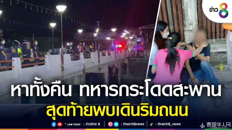 泰国华人网讯 昨日,泰国南邦府特种部队训练营军事教官诺东(化名)跳下位于南邦府Mueang县Hua Wiang镇Koh Warukaram寺的大桥。随后,人随着河流飘走。 事件发生前,诺东曾与服役于清莱府的军官朋友进行视频通话,抱怨生活的琐碎之事,随后把手机立在包上,将摄像头对着自己,转身爬上桥后便跳入河中,尽管朋友尽力劝阻但也无济于事。 事后,南邦府潜水救援人员立马展开救援,寻找一整夜仍未找到。直至今天早上,南邦防灾减灾中心继续加派救援人员超50人、救援船2艘进行搜寻。诺东的亲属、朋友也一同进行寻找。 对此,诺东的父亲表示,今天是儿子的41岁生日,不曾预想到今天要来找儿子的尸体。但仍希望,儿子能够存活下来。至于事件发生原因,据诺东父亲透露,自2021年底,诺东发生车祸后头部受到严重的撞击,之后便出现了容易紧张和抑郁的症状。此外,儿媳妇去别府工作,儿子极力反对,也通过各种方式想要儿媳留下,于此也造成压力过大。 且据诺东的队友表示,类似事件已发生不少于5次,诺东每次都能够活着,这次也希望如此。当队友骑车到事发附近的大桥时,在距离事发点500米处发现衣着体型与诺东相似的男子,在街尾边走边发呆,证实后确实是诺东,便叫救护车将其送往医院,目前,其家属正在医院对其进行照顾。 (编译:何萱蓉 四点零翻译工作坊;审校:wan;来源:thaich8) 原文:Thailand Headlines |