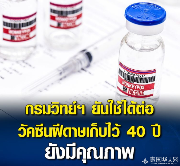泰国华人网社讯 7月22日,泰国医学厅厅长素帕吉就政府制药机构封存40多年的天花疫苗质量检验结果召开新闻发布会。会上,素帕吉表示,政府制药机构的13种天花疫苗仍符合一般病毒疫苗的标准质量,如果国内爆发猴痘疫情,且在找不到疫苗的情况下可以使用天花疫苗作为预防。