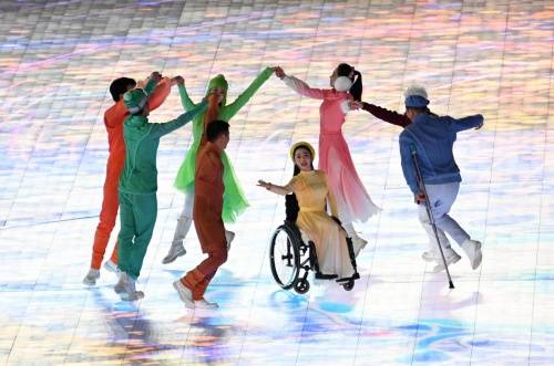 在《雪花》轻柔的音乐声中,失去左腿的芭蕾舞女孩李月,自如地操作着轮椅在鸟巢舞蹈,脸上带着自信的微笑,这一幕出现在北京2022冬残奥会闭幕式文艺节目中。