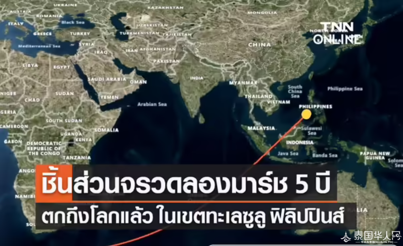 泰国华人网讯 近日有消息称,长征五号乙运载火箭的部分部件于今日坠毁,或将可能对泰国造成影响。最新消息报道,长征五号乙火箭碎片降落在菲律宾苏禄海,未影响泰国。
