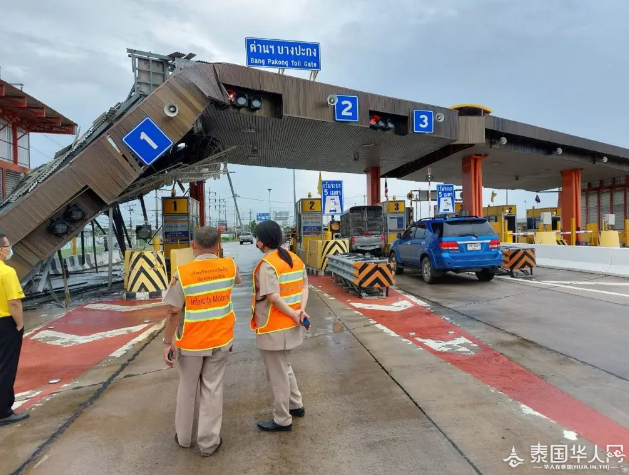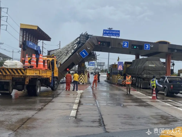 泰国华人网讯 8月1日11时30分左右,前往芭提雅方向的高速公路收费站Bang Pakong发生坍塌。
