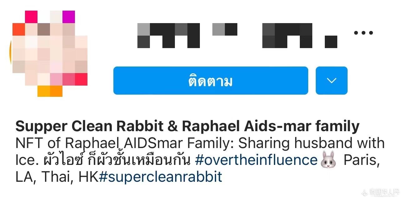 此外,该账号还故意在Ice好友Ying、Pei等账号下评论,同样称其与Ice共享丈夫。点进该神秘账号主页后发现,该账号单纯为发布该消息而创建,主页中写到,“你的丈夫不是什么好人,你并不是他唯一的女人,他恐怕睡过一万名女性,我代表泰国和中国香港一百多名曾被你丈夫欺骗过的女性发声”。同时还上传一张Ice的图片,图片上配有“你丈夫身边有全世界的女人,不只你Ice一人”文字。