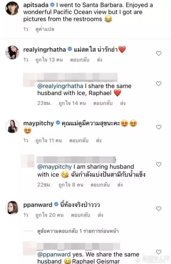 泰国华人网讯 据泰媒报道,8月5日,泰国3台旗下著名女演员兼模特Ice Apitsada的私人IG帖子下遭到一神秘账号评论,称其与Ice共享一夫。