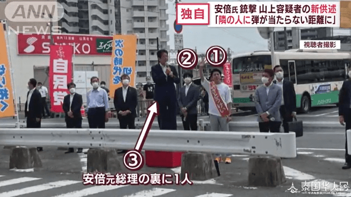 安倍遇袭现场(朝日电视台) 海外网8月8日电据日本朝日电视台8日报道,日本前首相安倍晋三7月8日在奈良市街头演讲时遭枪击不治身亡,嫌疑人山上彻也最新供述称,开枪时,安倍身旁的人都在安全距离内,不会被击中。