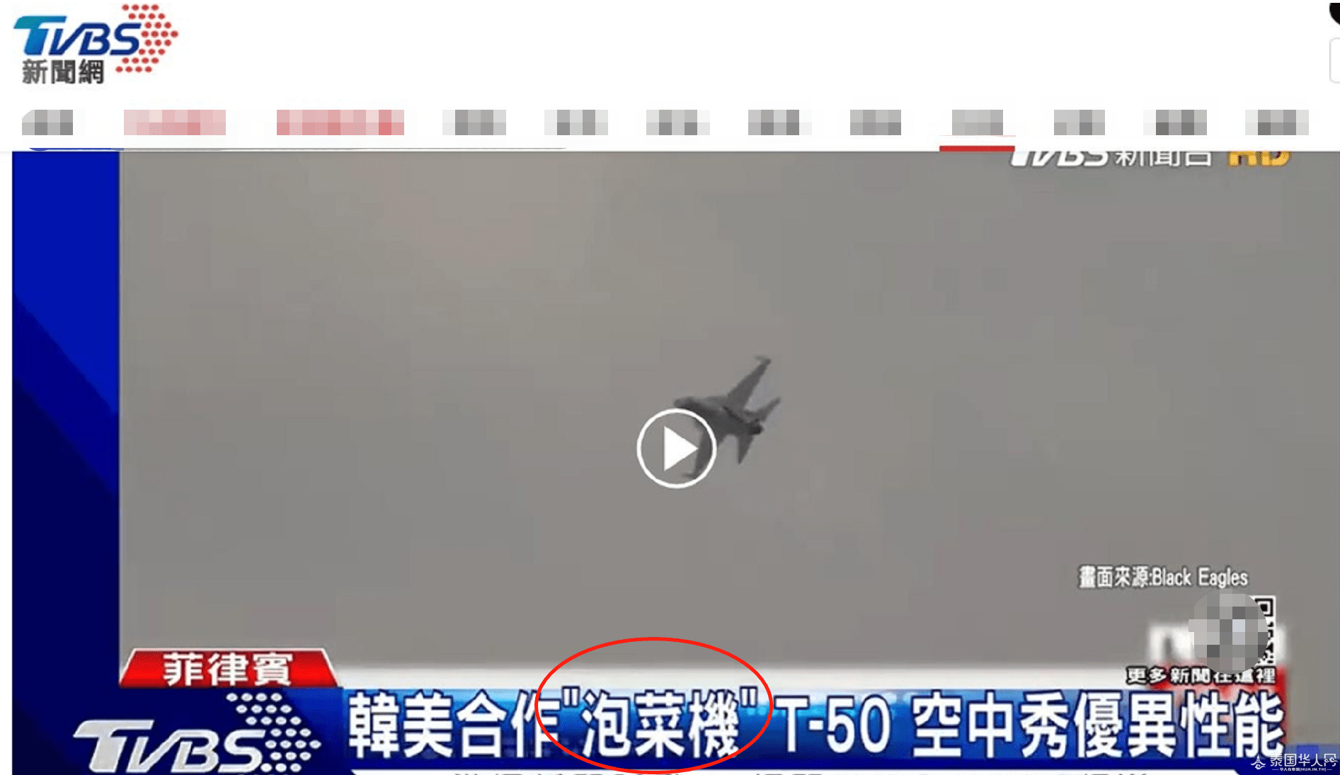 台湾TVBS电视台报道截图 海外网8月19日电 据《朝鲜日报》8月18日报道,最近台湾TVBS电视台在报道韩国国产T-50超音速高级教练机时,将其称为“泡菜机”,在韩国引发巨大争议,许多韩国网友认为是“贬低韩国”。目前,TVBS电视台已对“泡菜机”字幕打上马赛克,但未回应此事。 8月16日,TVBS电视台报道韩国空军“黑鹰”飞行表演队赴菲律宾参加航展,在介绍T-50战机时,打出“韩美合作‘泡菜机’”的字幕。据悉,T-50由韩国航天工业公司和美国航天巨头洛克希德·马丁公司联合研发。 该视频上传到优兔(YouTube)上后,迅速在韩国网民中引发争议。1200多条评论中,大部分都是韩国网民所写。有韩国网民认为,“这是在嘲弄和贬低韩国空军。”有网友表示,“没想到台湾社会这么嫌弃韩国。”(海外网 刘强) 责编:刘强、刘凌 |