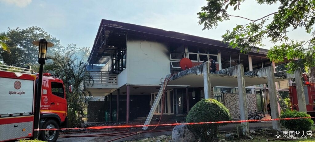 泰国华人网讯 据泰国媒体报道, 泰国总理秘书办公室迎宾馆失火,警方初步推断起因为电路短路。 11月12日,Cha-am警察局接警称位于碧差汶府Cha-am县的总理秘书办公室迎宾馆发生火情。接警后,警方立即协调当地防灾减灾单位出动四辆消防车前往灭火,并前往事发地展开调查。 失火楼房为两层建筑,下层为水泥建筑,上层为木建筑。救火人员赶往现场时,发现二楼有火苗和大量烟雾,便立刻发动四辆消防车进行灭火,消防人员历经三十分钟才控制住火势。 警方对现场进行勘察后发现,迎宾馆二楼遭到了大范围焚烧。二楼的天花板、屋顶、桌椅、沙发以及卧室内的床都被烧毁,二楼的玻璃墙也大量碎裂。 迎宾馆看管员Tani先生称,事发时迎宾馆内没有人居住,自己正在附近的另一栋建筑办公,当听到不同寻常的坍塌声且发现迎宾馆周围烟气弥漫,便赶往迎宾馆查看,发现起火后便立即报了警。 根据初步推测,此次失火原因与电路短路有关,目前,警方已联系相关取证人员进行后续调查。 (编译:宣瑞淑 四点零翻译工作坊 审校: hush 来源:matichon)