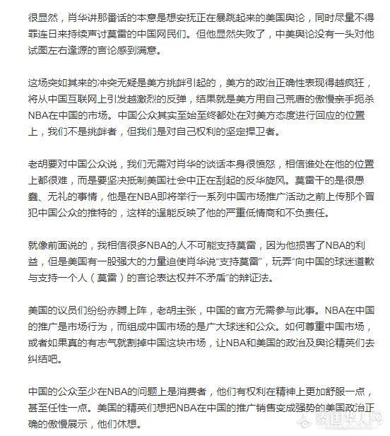 胡锡进点明了美国的丑陋嘴脸,他们明明知道NBA中国赛要在中国举行,而就在这个之前发表这些言论,其险恶用心不言自知!无需狡辩!该怎么做我们自己应该知道了。 |