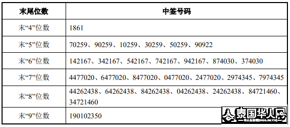 凡参与网上定价发行申购徐州浩通新材料科技股份有限公司首次公开发行 A 股股票的投资者持有的申购配号尾数与上述号码相同的,则为中签号码。中签号码共有 24,651 个,每个中签号码只能认购 500 股徐州浩通新材料科技股份有限公司 A 股股票。 2021 年 7 月 7 日(T+1 日)进行了华蓝集团股份公司首次公开发行股票网上发行摇号中签仪式。中签结果如下: