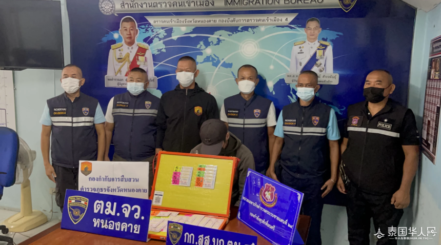泰国华人网讯 12月9日,据泰媒报道,廊开移民局局长塔宁中校及相关工作人员根据移民局有关政策,以逾期滞留泰国并高价出售彩票为由,逮捕了一名中国籍男子。