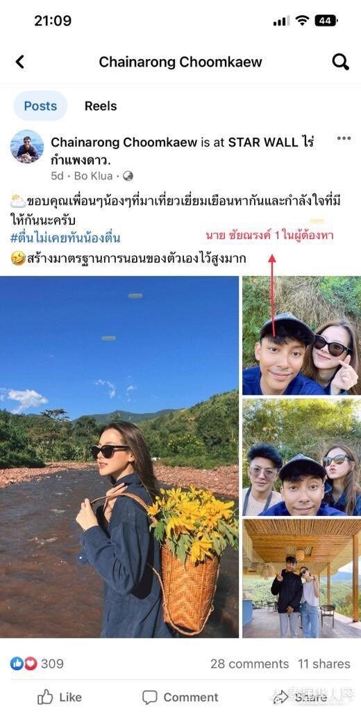 据悉,在此之前,警方联合Bo kluea区森林保护单位、地方管理局以及帕府森林资源管理办公室,持难府法院传票对难府当地知名旅游度假区Star Wall Sapan进行搜查。经过搜查发现,该度假区建有12处游客住宿区,侵占了当地森林保护区约3莱土地。随后警方便发布公告禁止任何人入住度假村。 但度假村经营方拒绝配合,仍通过社交媒体以每间客房5,000-10,000 泰铢的价格出售客房,同时以著名女明星入住度假村为噱头进行宣传 ,并假借各界名人声誉增加自身可信度。对此,警方依法采取措施,对包括Chainarong先生(32岁)、Chanyaporn 女士(23 岁)、 Kwan 先生(34 岁)和 Wichai 先生 (25 岁)在内的四位度假区经营者实施抓捕,共缴获物品11件,并按照法律对4名嫌疑人提出“共同建造违法建筑、砍伐、焚烧侵占森林保护区土地”的指控。