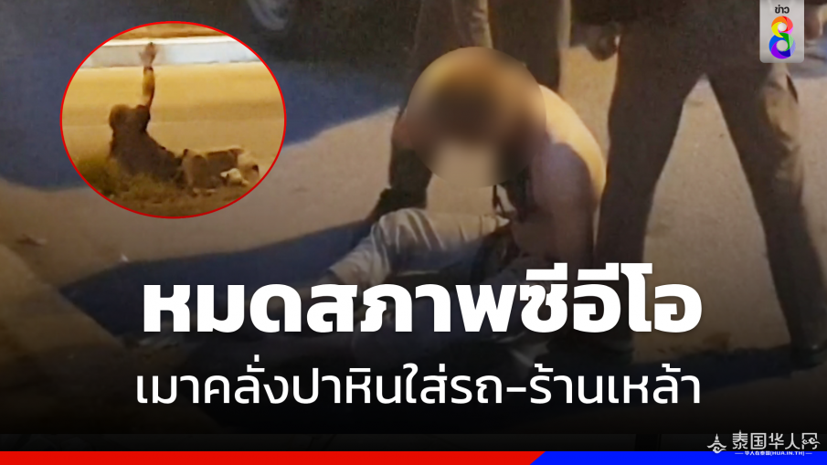 泰国华人网讯 12月24日,据泰媒报道,泰国南邦府当地警方接到报案称有一男子当街耍酒疯,向路人或过往车辆投掷石块、酒瓶等物品。