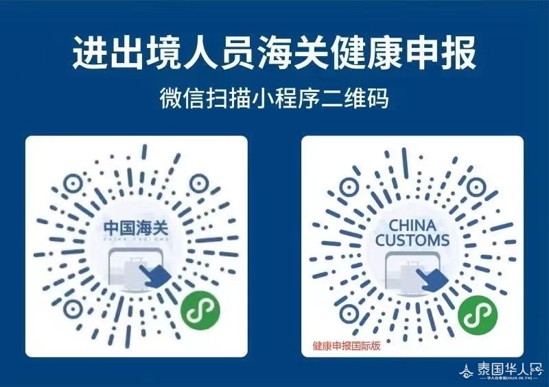 泰国华人网讯 根据国务院应对新型冠状病毒感染疫情联防联控机制综合组12月26日发布的《关于印发对新型冠状病毒感染实施“乙类乙管”总体方案的通知》,自北京时间2023年1月8日起,拟赴华人员在行前48小时进行核酸检测,结果阴性者可赴华,无需向中国驻泰使领馆申请健康码。 请将登机前48小时内核酸检测结果通过微信小程序“海关旅客指尖服务”、“掌上海关”APP 或登录网页(网页链接)等途径填入《中华人民共和国出/入境健康申明卡》。如呈阳性,请在转阴后再赴华。 当前,国际疫情大流行仍未结束,请赴华人员做好自己健康第一责任人,注意加强自身防控,坚持科学防疫,最低程度降低染疫风险。 (来源:中国驻泰王国大使馆)