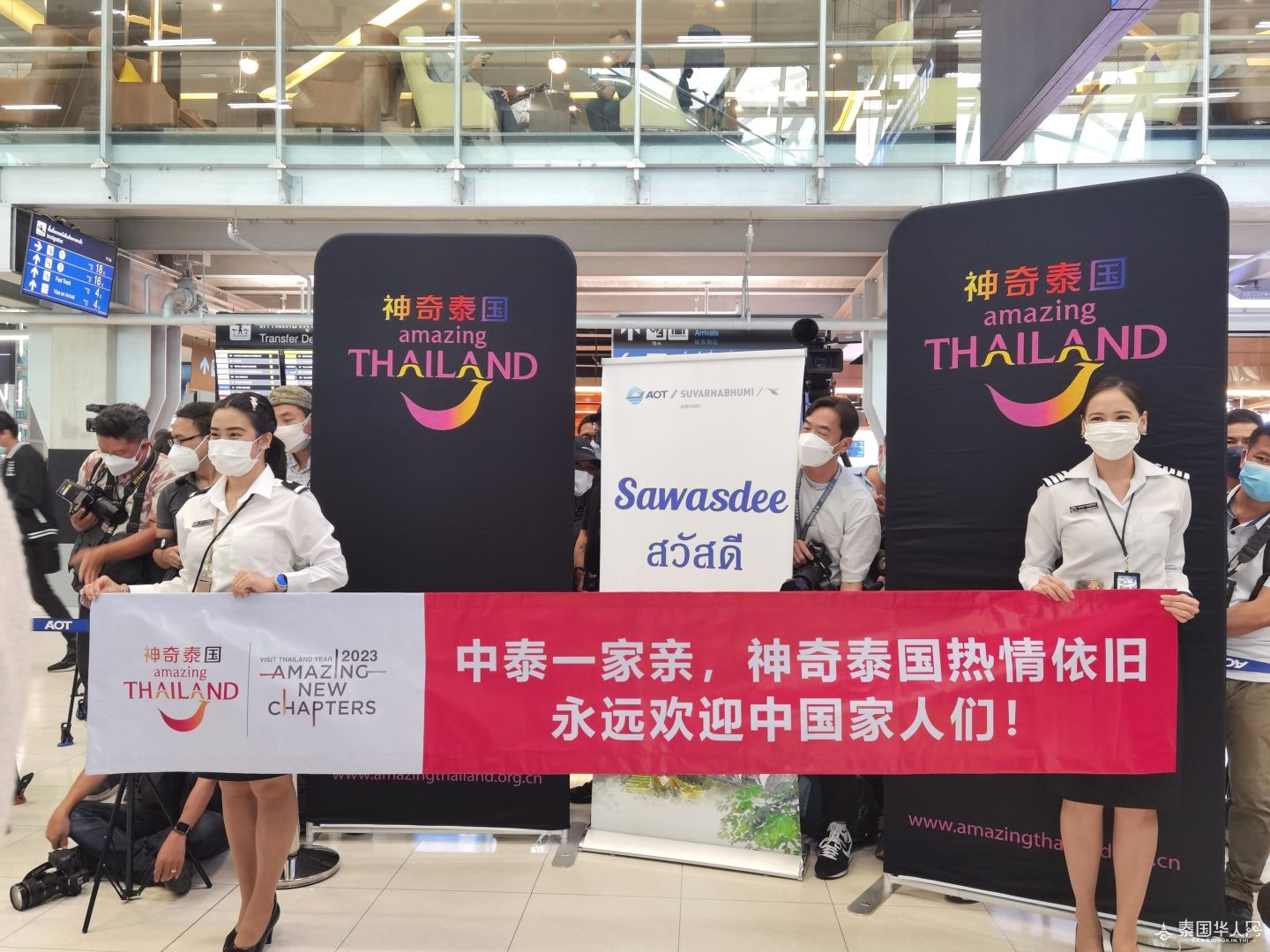 同时,泰国国家旅游局局长育塔萨在现场接受泰国头条新闻采访时表示,很高兴再次看到中国游客来到泰国旅游,希望中国游客在泰国能有愉快、安全的旅游体验。最后育塔萨还用中文对中国游客说到“中泰一家亲,欢迎你们来泰国”。 (记者:wan) 原文:Thailand Headlines |