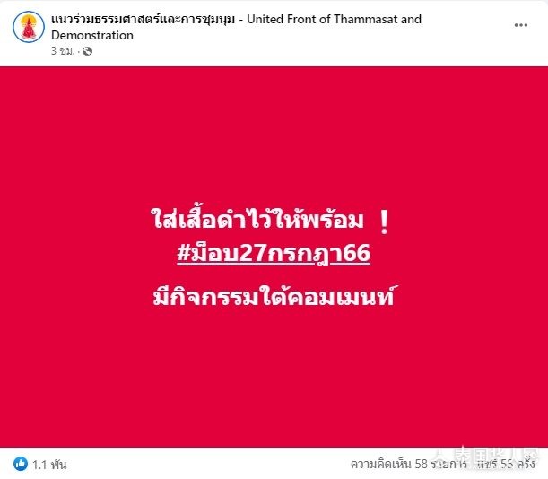 民主光复组织(DemocracyRestoration Group)发帖:“选举结束近三个月,泰国仍未产生总理。这一局面的罪魁祸首是参议员,他们阻挠了5月14日人民的投票结果,阻止民主的恢复。这种拖延只会损害国家利益,让人民失去恢复民主的机会、梦想和希望。独立组织日益壮大,压迫人民领袖屈服于不义的权力。所谓的正直政客开始向独裁、资本势力和封建网络低头,只为谋取私利而忘记了公共利益。人们呼喊声嘶力竭,甚至付出生命代价,但坚决不言退。我们希望人民的代表在独裁统治下绝不妥协,与我们一起战斗。如果你无法容忍独裁者的冷漠,请于7月27日星期四下午5:00穿上黑衣,彰显力量,表达立场,让其他政客和阿披实见识下我们,我们将在四面佛路口相见。” (编译:李青璇 四点零翻译工作坊;审校:wan;来源:matichon) 原文:Thailand Headlines |