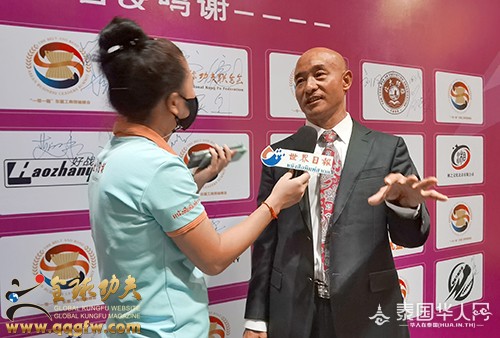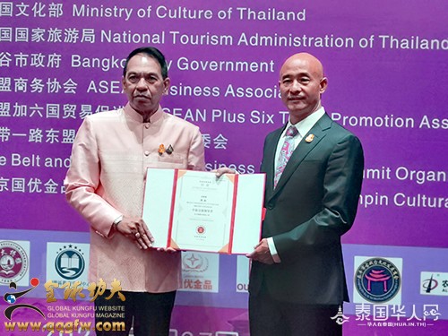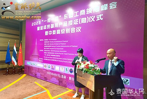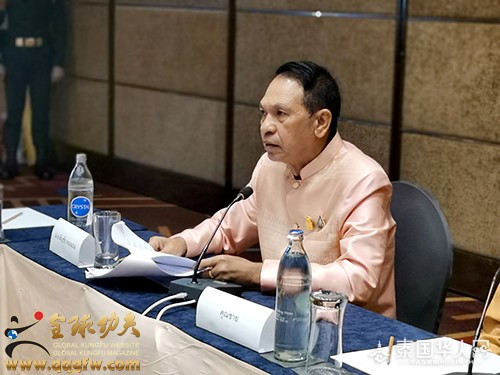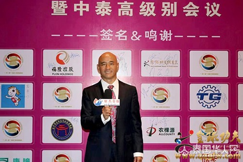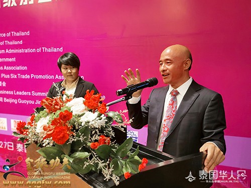 傅彪发表“以武术的魅力而赢得世界”为主题的激情演讲。他讲道:“中泰两国作为友好近邻,两国关系长久以来保持健康稳定发展。中国民营经济国际合作商会,就是对接一带一路的平台,是联系世界各国民营企业交流的桥梁——以服务为中心,以项目为纽带,以人才为支撑,以金融为保障,以需求为重点,与优秀的企业家团体一同推动经贸和文化的交融,促进全球经济一体化发展的进程。我们国际功夫联合会,也在推动一带一路沿线各国武术功夫的发展与传播。我们许多优秀的企业家,为了推动经济事业的发展做出了巨大的贡献,而忽略了身体的锻炼。我总结了两句话:体魄的强大让你走遍天涯,智慧的升华让你征服天下。我们在壮大经济的同时,更要强大自身的体魄。毛主席讲‘自信人生二百年,会当击水三千里’,习主席讲‘打铁还需自身硬’。目前,我们正努力在普吉岛建设中国功夫文化中心、国际功夫联合会训练基地,旨在构建以中国优秀传统文化为核心的文化空间。泰国是一个充满激情浪漫微笑与文明和谐的国度,而普吉岛是全世界最适合生活居住的宝岛,我建议将普吉岛打造成为:功夫搏击之岛,泰拳传播之岛,健身运动之岛,航海游艇之岛,激情澎湃之岛,自由浪漫之岛,诗文创作之岛,休闲养生之岛,冲浪潜水之岛,国际教育之岛,创新发展之岛,文明世界之岛,国际魅力之岛。让全世界人民喜欢普吉岛,热爱普吉岛,追随普吉岛。拿破仑说过,人类有两种力量:利剑和思想。但往往利剑败在思想之下。我总结了人类有三种力量,那就是思想、文化、精神。武术是思想与肢体语言的结合,是艺术与美学的结合,是力量与技能的结合,是一项开发人大脑和肢体相互协调发挥的运动;是一门提振全人类精神意志的科学技术。一个国家文化的提升可以升华一个民族的思想;武术的振兴可以提振一个国家的民族精神。一个有思想的民族是有理想有目标有希望的民族;一个有精神的民族,这个国家才会越来越强大!大到治国理政,小到治家兴业都离不开思想、文化、精神。我们习武之人要不断提升思想理念、文化修养、精神境界、功夫技艺,从而升华每个人的社会责任感、社会影响力、社会知名度、社会价值观、社会形象、社会地位、人格魅力。一千条华丽的语言不如一个行动。我们创业者要把握新时代的创业机会,在危机中育新机,于变局中开新局。积极响应一带一路的号召,以武术搭台,经济唱戏,把武术专业化、标准化、规范化、产业化、市场化、全球化,用实际行动去推动武术事业的蓬勃发展,让全世界人民享受到武术带来的健康与快乐,最终实现以武术的魅力而赢得世界!”