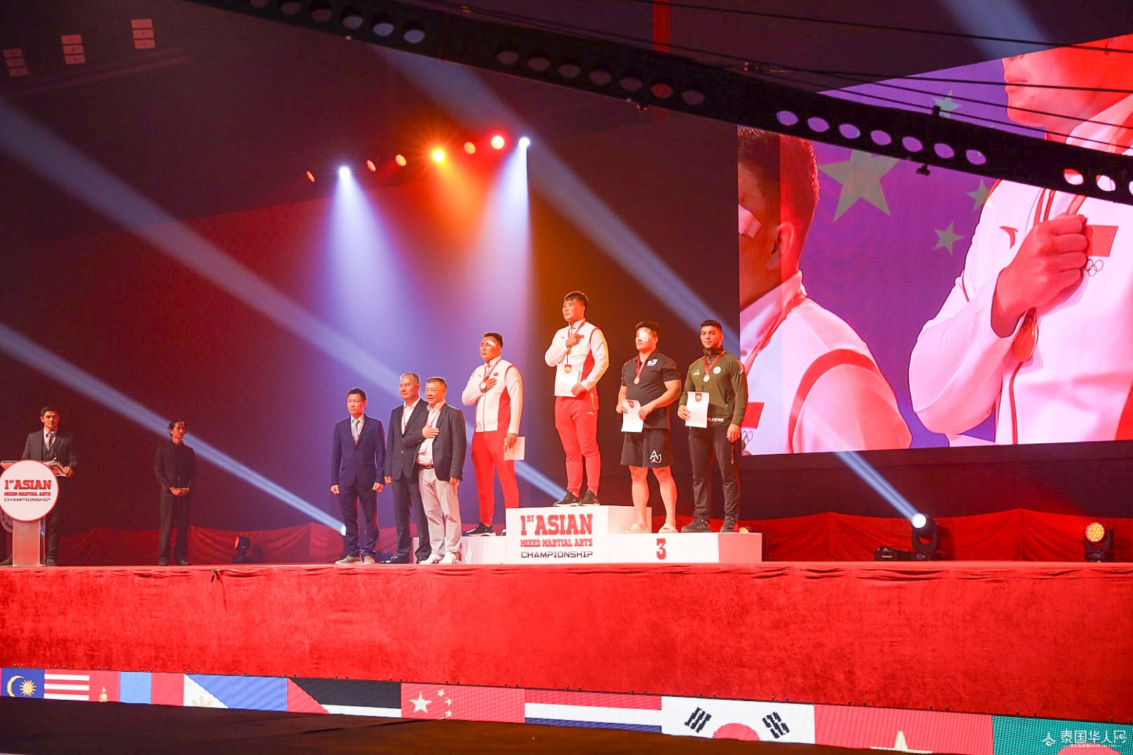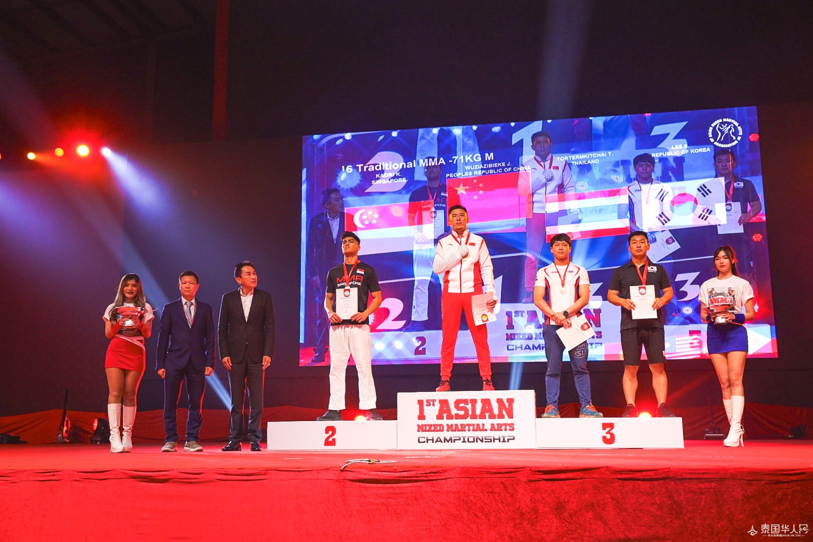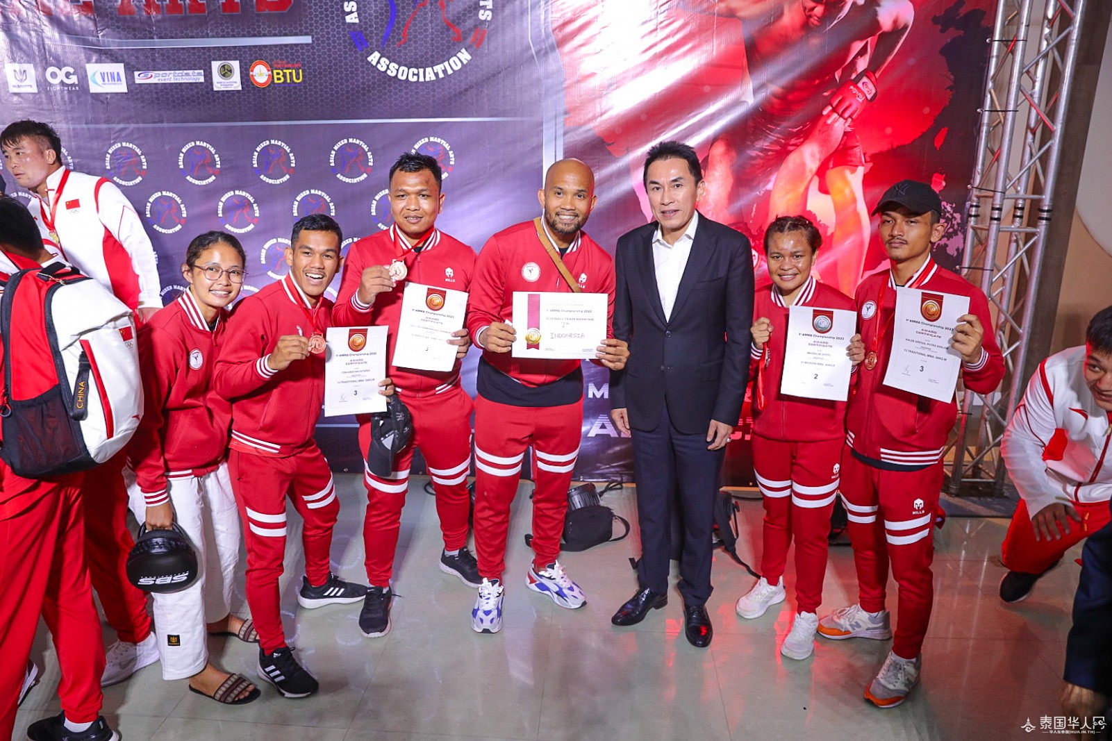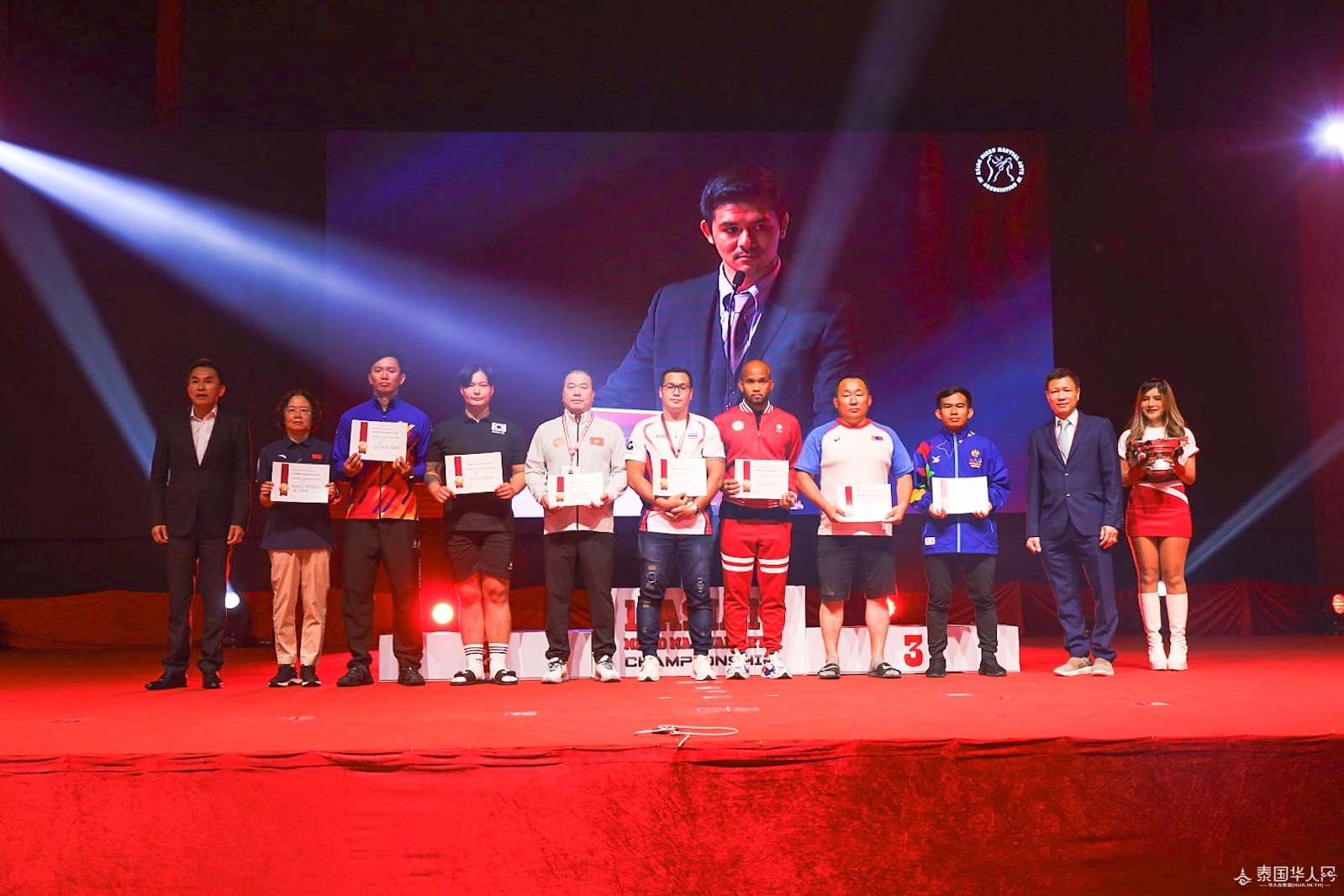 泰国华人网讯 8月18日至8月20日,历经三天的激烈竞技,首届亚洲综合武道锦标赛在泰国曼谷成功举行,并于8月20日隆重的闭幕仪式。作为本次锦标赛的主办方,亚洲奥林匹克理事会副主席兼亚洲综合武道协会主席唐逸刚先生、亚洲综合武道协会秘书长汤寿延先生、亚洲综合武道协会副主席Yousef Bechtari先生邀请到了为泰党创新与集体事务顾问委员会主席兼为泰党总理候选人的贝东丹女士、新加坡奥林匹克基金主席兼国际奥委会第一副会长黄思绵先生、亚洲奥林匹克理事会顾问Somsak Leeswadtrakul博士、国际自卫运动协会(IFSA)主席General Taweep Jantararoj先生、TSI Insurance公司董事长刘辉先生、泰华新媒体协会执行会长郭蕊女士等多位重要嘉宾出席,共同见证了这一盛大的时刻。