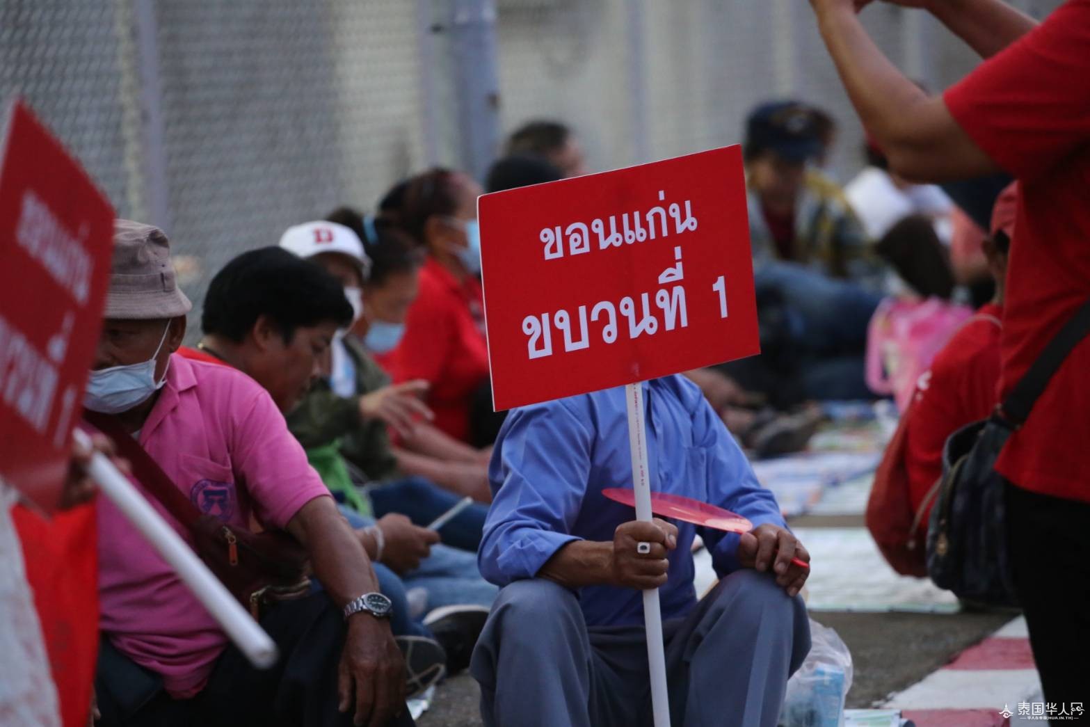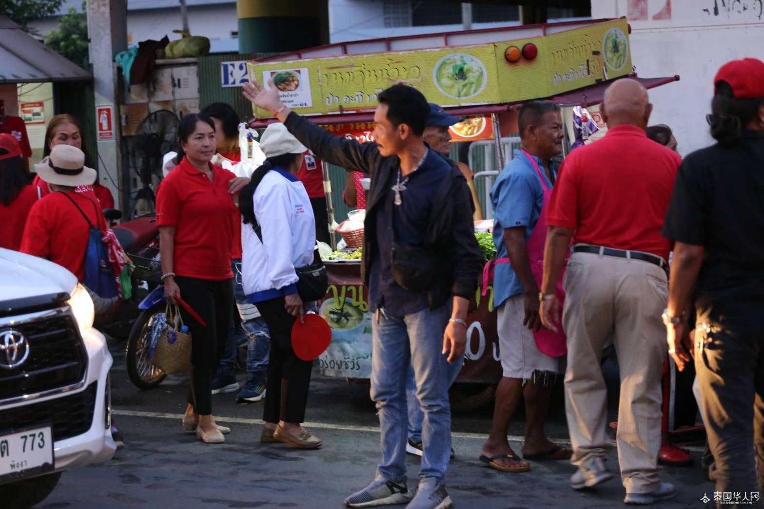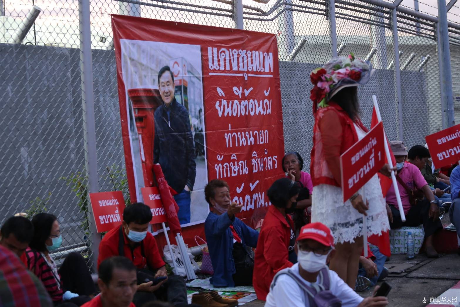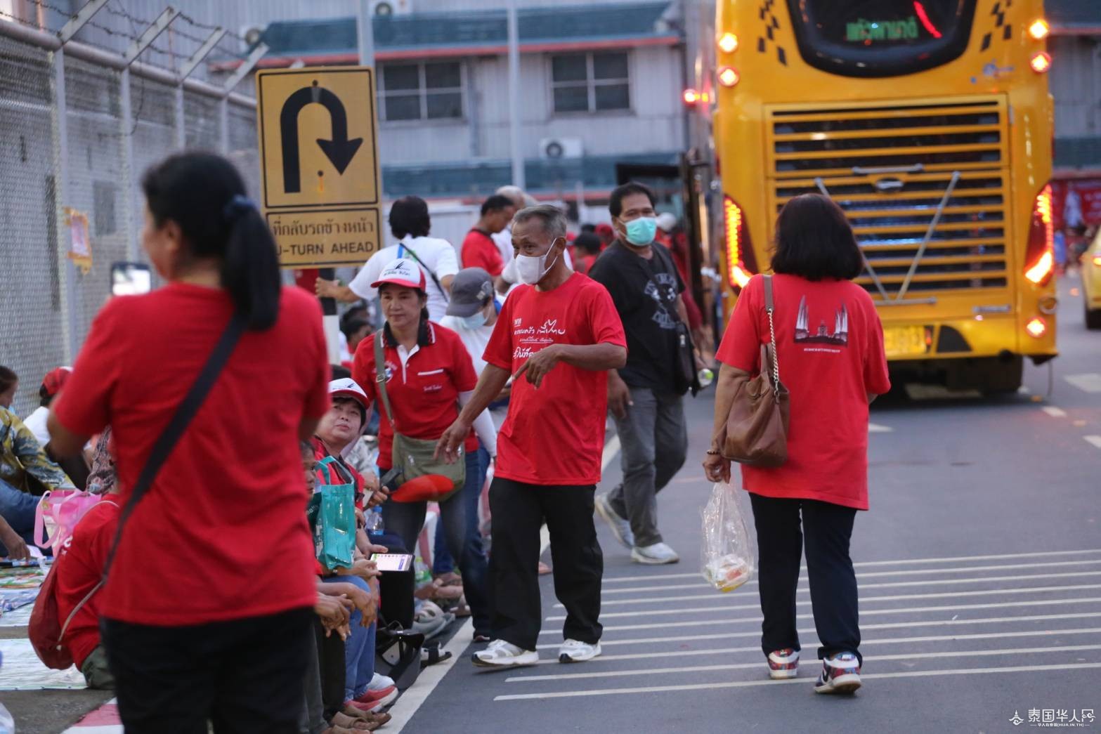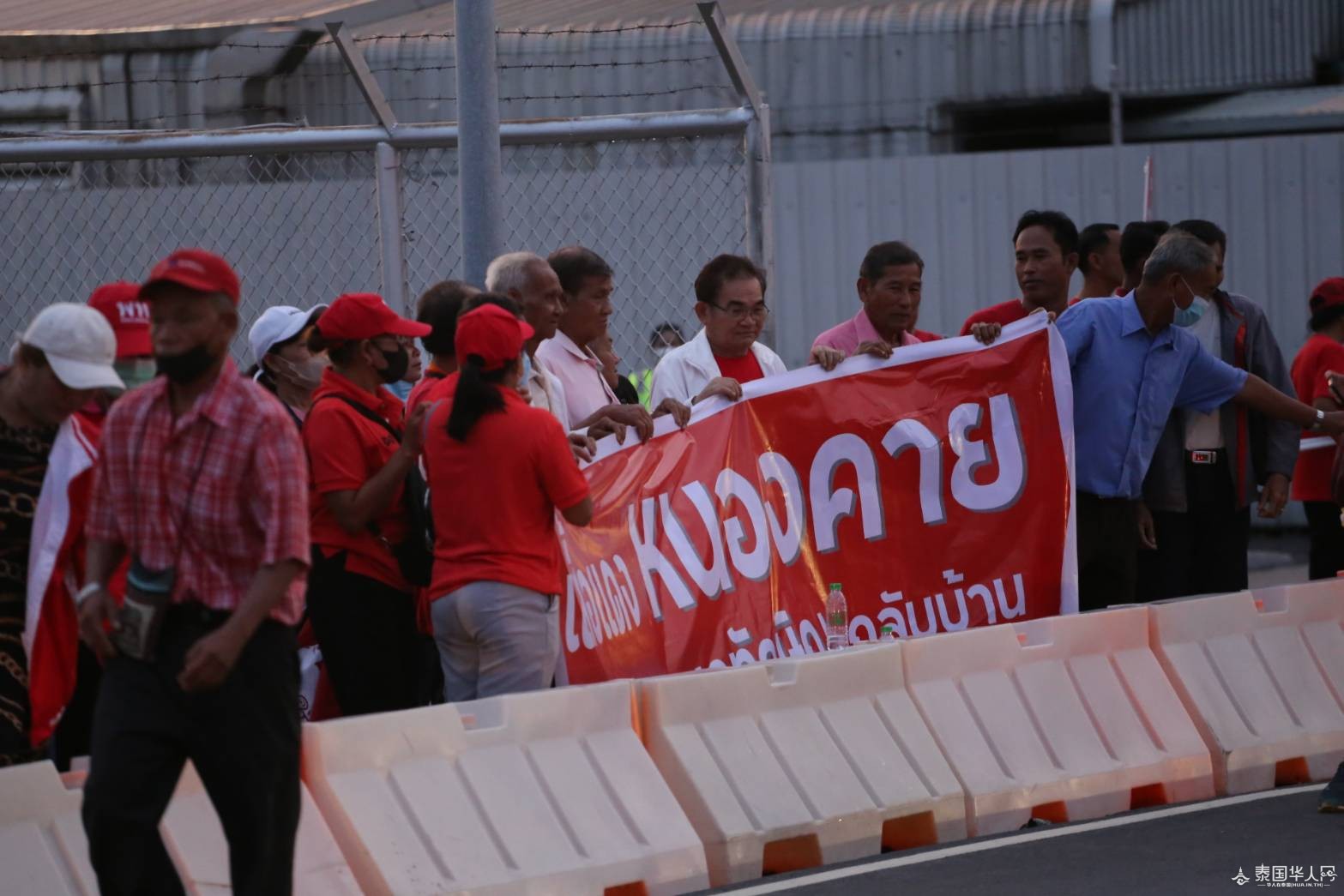 大批“红衫军”已在廊曼机场外等候他信抵达