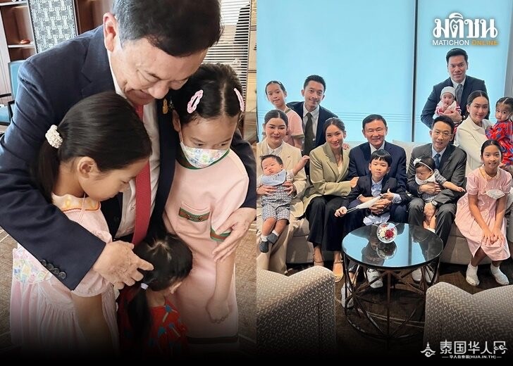 泰国华人网讯 据泰媒报道,8月22日上午9点,泰国前总理他信乘坐私人飞机抵达泰国,结束了其17年的海外流亡生活。随后,包括女儿贝东丹在内的多名家庭成员前往机场接机,并在社交媒体上晒出全家福。照片中,他信与女儿女婿、外孙外孙女等家人齐聚一堂,氛围十分温馨。