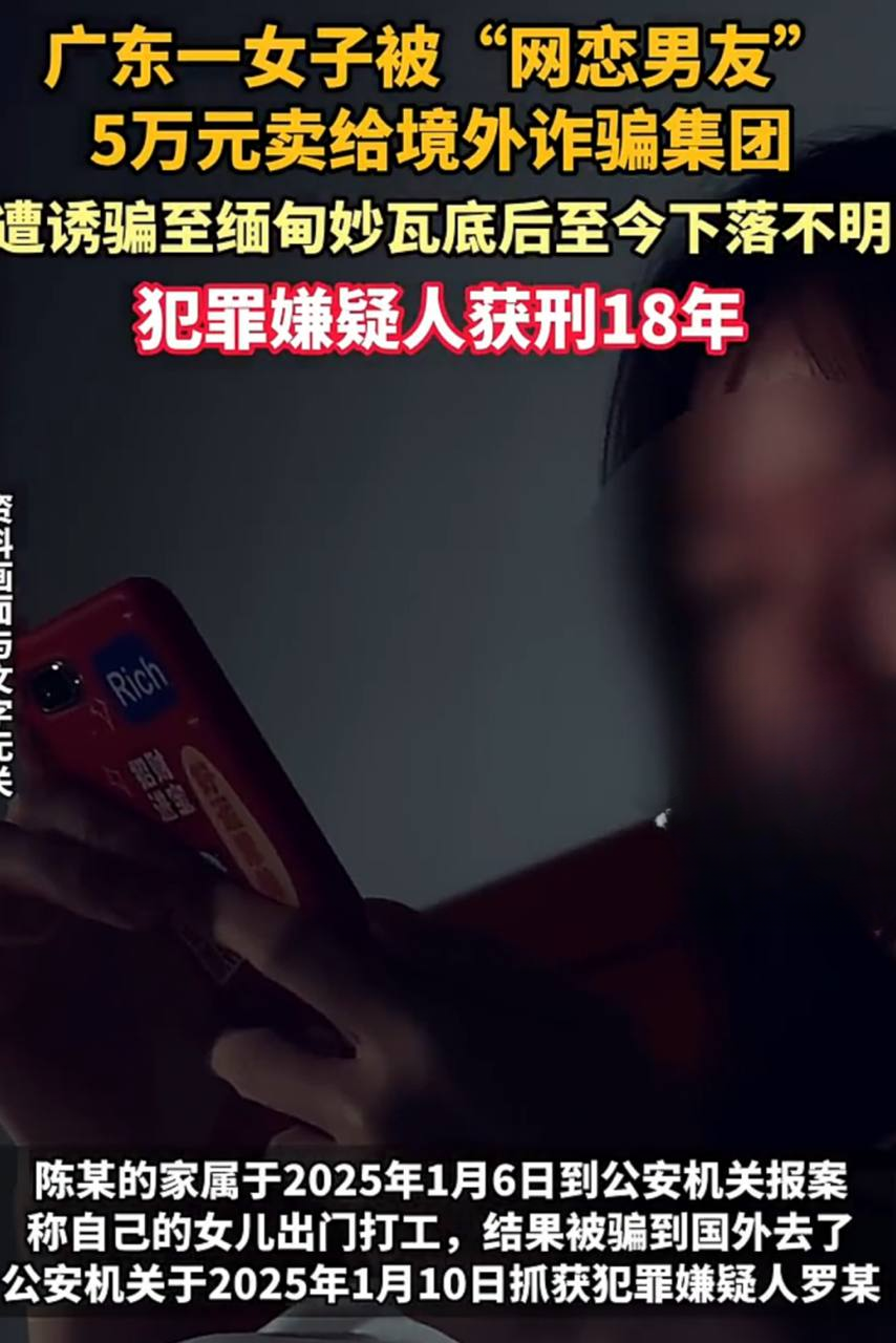 | 泰国华人网讯 广东省梅州市梅江区人民法院近日对一起恶性拐卖妇女及偷越国境案件作出判决。被告人罗某因犯组织他人偷越国(边)境罪和拐卖妇女罪,数罪并罚,被判处有期徒刑十八年,并处罚金人民币五万元。法院采纳了检察机关提出的全部公诉意见。 经调查,2024年底至2025年1月,罗某等人通过网络发布交友和招聘信息,假装与女性被害人陈某谈恋爱,以获取信任。随后,他们以“到泰国办卡跑分可得高额报酬”为诱饵,诱骗陈某偷渡出境,并以五万元人民币将她卖给境外诈骗集团。陈某随后被转运至缅甸妙瓦底,至今下落不明。 本案因被害人家属报案而被查处,法院的判决显示,中国司法机关对与境外犯罪集团勾结、侵害中国公民人身权利的犯罪行为实行零容忍态度。此类犯罪将面临法律的严厉惩处,彰显了国家打击跨境人口拐卖和诈骗的决心。 |