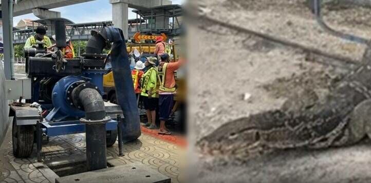 昨天下午曼谷邦肯地区的大范围涨水严重影响了交通。起初,排水局的官员无法理解为什么四台抽水泵在道路排水中会停止工作。当他们检查机器时,他们发现一只巨大的蜥蜴(泰语称为 "tua hia")卡在其中一个泵里。 昨天下午,洪水发生在Ratchadapisek路和Phahonyothin路,位于连接Bang Sue和Chatuchak的区域。四个坏掉的水泵在Bang Khen环岛、Soi Ram Inthra 21和Khlong O - Rang Kaew由于机器故障造成了很深的洪水。 该区域官员叫来了排水局的工作人员,安全地移走了巨蜥,并使水泵重新运转。不久后水位和交通才恢复了正常。 亚洲水巨蜥在曼谷的运河或在Lumphini公园中比较常见。但在大雨风暴天气时也会闯入人类家中会寻求庇护。 |