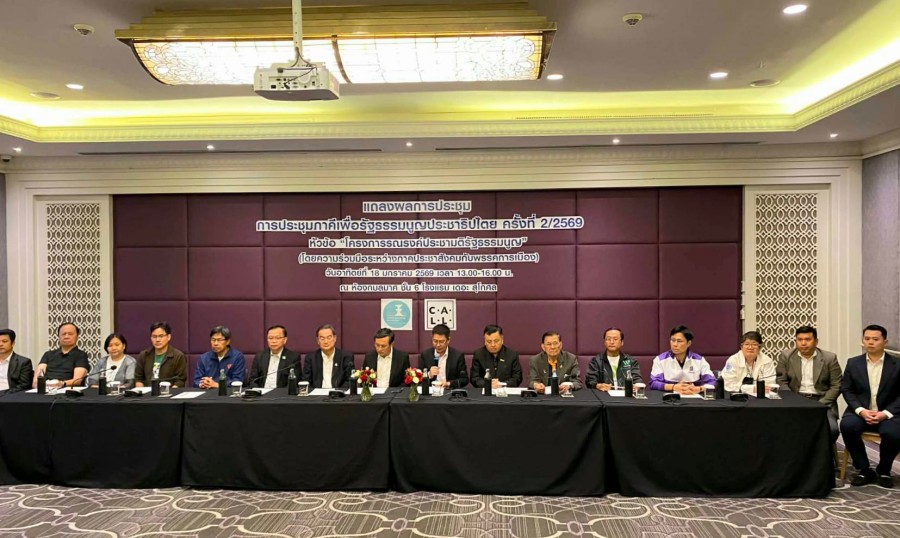 | 泰国华人网讯 2026年1月18日,泰国为泰党、泰自豪党、人民党、民主党、泰建泰党、动力党、泰族党、正义党、泰自由党等9个政党联合多家民间组织,就“宪法公投”举行宣传会议,并达成共识,呼吁民众在“是否赞成制定新宪法”公投中投下“赞成”票。参与会议的民间社会组织包括民主宪法联盟、全民宪法起草团体(Con For All)、人民自由权利协会、民主运动委员会、青年选举观察网络(We Watch)、民主组织基金会(PNET)、社会志愿者基金会、网络法律促进项目(iLaw)、宪法运动网络(CALL)、Westminster民主基金会(WFD)等,同时还有艺术家、企业家及法律人士代表。此次公投议题由内阁根据宪法法院裁决拟定,将于2026年2月8日进行。 会议中,代表们指出,泰国当前面临政治、经济、社会、环境、官僚体系及技术等多方面结构性问题,这些问题因涉及细节众多,无法仅通过局部调整解决,必须从政治结构和大原则层面进行改革,而制定新宪法正是必要途径。会议达成共识,认为新宪法应源于广大民众的广泛参与,并提出以下意见与建议。