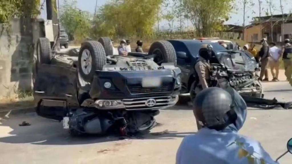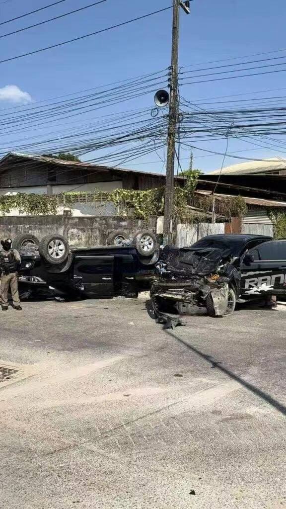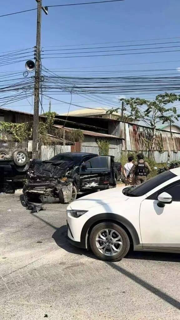 当一辆来自沙拉武里府的黑色福特Ranger皮卡驶入视线,司机发现检查站后迅速掉头逆行逃离。执勤警察判断其行迹可疑,可能藏有违禁物品,立即通知无线电中心及其他巡逻队协助拦截,并驾车及骑警用摩托车展开追捕。 据报道,该车在逃避追捕过程中,以不顾生命安全的高速疯狂行驶,最终在湄索县空春普拉坦路口附近的灌溉渠十字路口失控翻车,剐蹭其他车辆,导致多辆汽车受损,造成多人受伤。