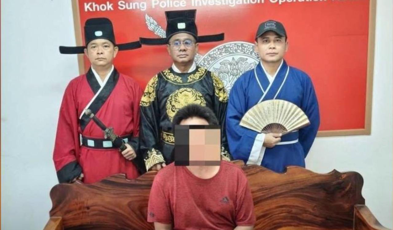 | 泰国华人网讯 泰国沙缴府警方近日展开严打行动,在当地上演了一幕现实版“包青天断案”。执法人员身穿中国历史名官包正(包青天)服装,突袭当地一处民宅,当场逮捕一名吸毒并参与网络赌博的男子,引发关注。 警方在行动中成功控制一名44岁男子。执法人员进入现场后发现,该男子在吸食毒品后沉迷于网络老虎机赌博,相关违法行为证据确凿,未给嫌犯任何逃脱空间。