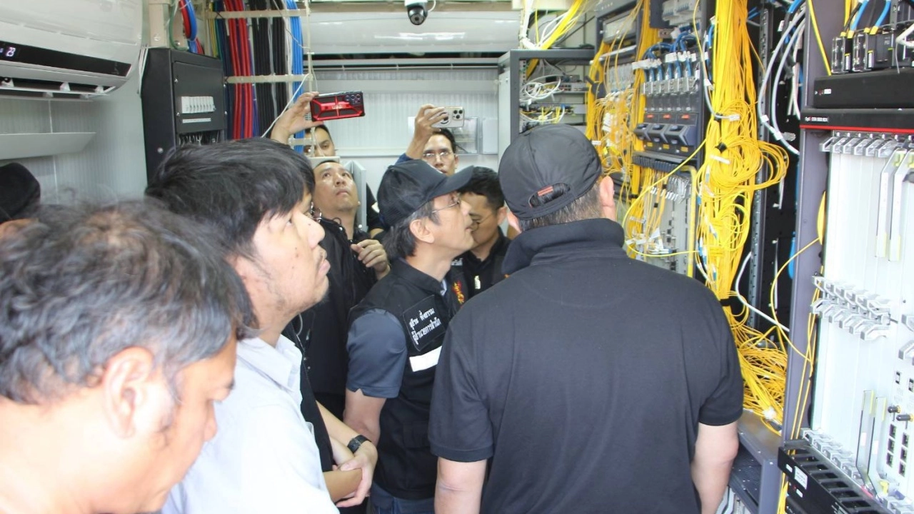 调查显示,此次行动起因于网络犯罪打击司(PCT)及在线反诈骗中心(ACSC)发现多起网络投资诈骗案件的受害者线索,追踪过程中发现诈骗活动所使用的IP地址信号源来自泰国境内,但连接至柬埔寨境内服务器,为诈骗集团提供技术便利。 进一步调查确认,部分私人企业仍在暗中提供跨境网络服务。在当地一处民宅内,警方查获用于中转网络信号的服务器设备。该房屋由泰国人持有,并出租给私人公司作为跨境网络信号中继点,直接将信号传输至柬埔寨波贝方向。