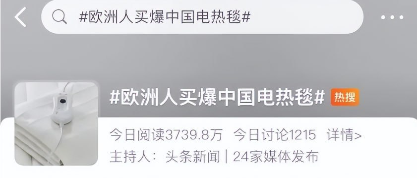 数据显示,仅一个月内,就有约140万条中国制造的电热毯运抵欧洲市场。跨境电商平台上,取暖类商品整体销量较此前增长超过三倍,暖手宝销量同比飙升447%,保暖丝袜也迅速成为欧洲女性消费者的新宠,相关品类订单持续走高。 尽管部分舆论仍将这类产品视为“低附加值商品”,但行业现实已发生明显变化。事实上,中国制造早已逐步摆脱单纯依靠低价竞争的阶段,在取暖设备领域已累计拥有84.4万项相关专利,涵盖节能控制、安全结构、智能调温等关键技术。