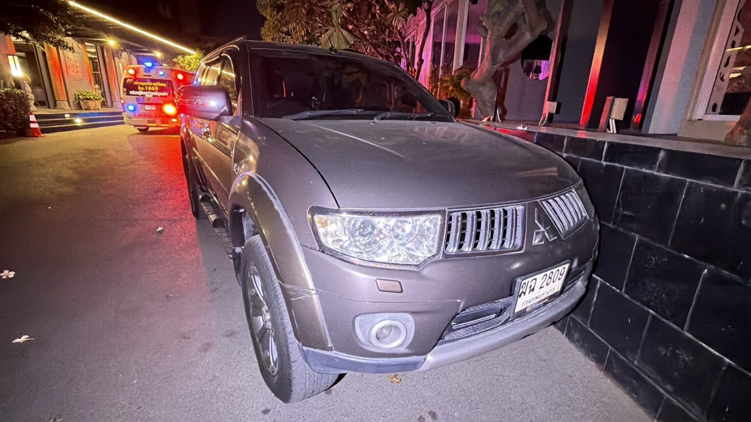 初步检查显示,李博锐头部受到严重创伤,颈部骨折,疑因剧烈撞击所致。现场警方封锁区域并覆盖尸体,进行初步调查。 警方在附近发现一辆棕色三菱帕杰罗,前端撞在酒店墙上。车辆驾驶员为36岁中国男子,神情震惊并明显焦虑。据初步陈述,通过一名泰籍女性翻译,事发前三人共用餐后驾车返回酒店送李博锐下车。送达后,驾驶员准备倒车离开。