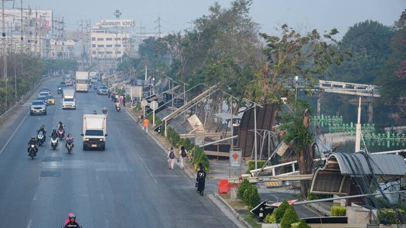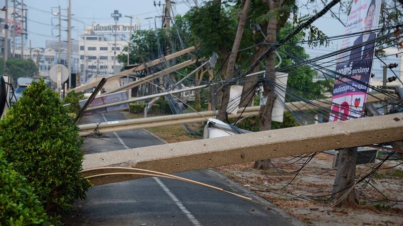 泰国大都会电力局工程人员到场后展开紧急抢修。电力局工程师帕苏通·拉塔纳坤表示,受损电线杆从北榄府城市医院前弯道路段开始,一直延伸至邦普镇第81巷,受损路段总长度接近2公里,倒塌电线杆高度为12米,中压与低压输电线路均受到严重破坏。