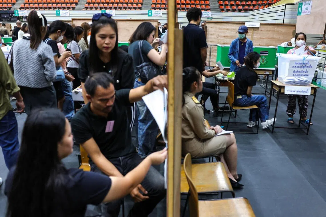 | 泰国华人网讯 泰国大选提前投票于2月1日顺利举行,共有超过240万选民登记参与,其中包括13万8000名海外选民。选民在投票过程中每人领取两张选票,一张投给所在选区的议员候选人,另一张投给支持的政党。这些提前投票选票将在2月8日大选正式投票结束后统一计入总票数。由于宪法公投规定仅在投票日当天进行,提前投票选民无法参与公投表决。 据曼谷市政府常务秘书纳隆透露,提前投票过程顺利,无出现任何问题。驻守素林府及柬埔寨边境的泰国军人也顺利完成提前投票程序,显示大选筹备工作顺畅。本次大选共有5300万合格选民,将从57个政党提名的5000多名候选人中选出下议院500名议员,其中包括400个选区议席和100个不分区议席。
