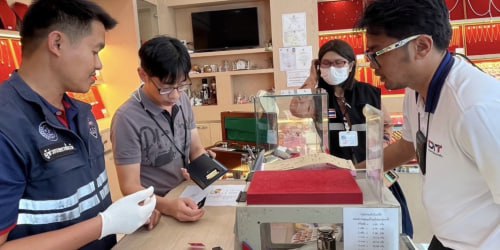 官方数据显示,截至目前,计量衡总部及15个分支机构已检查全国105家金店,共核验132台数字称重器具。绝大多数商家经营规范,价格与商品标签清晰透明,但在乌隆他尼府仍发现1台电子秤误差超出法定标准,已被当场贴上“禁止使用”标识并依法处理。