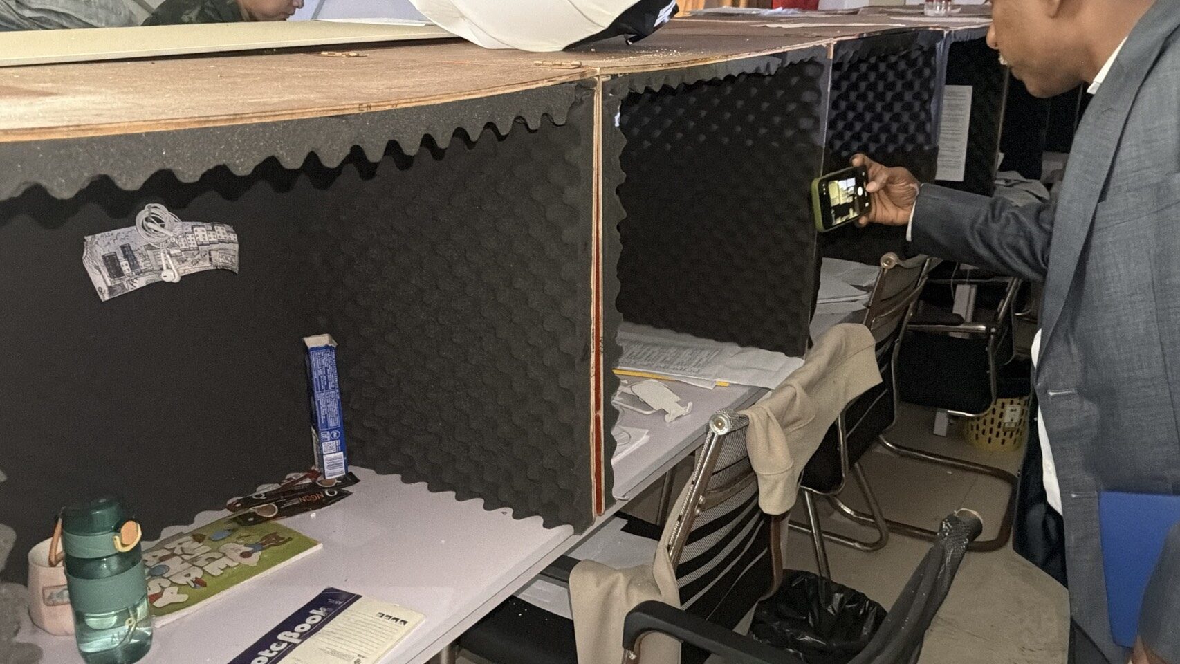 在相关建筑内,调查人员发现大量用于诈骗的实物证据,包括伪造的政府机构场景,如警察局和银行办公区,以及各国警服、受害者名单文件、电子设备和生活用品。这些布置被用于制造“官方背景”,诱骗各国受害者。