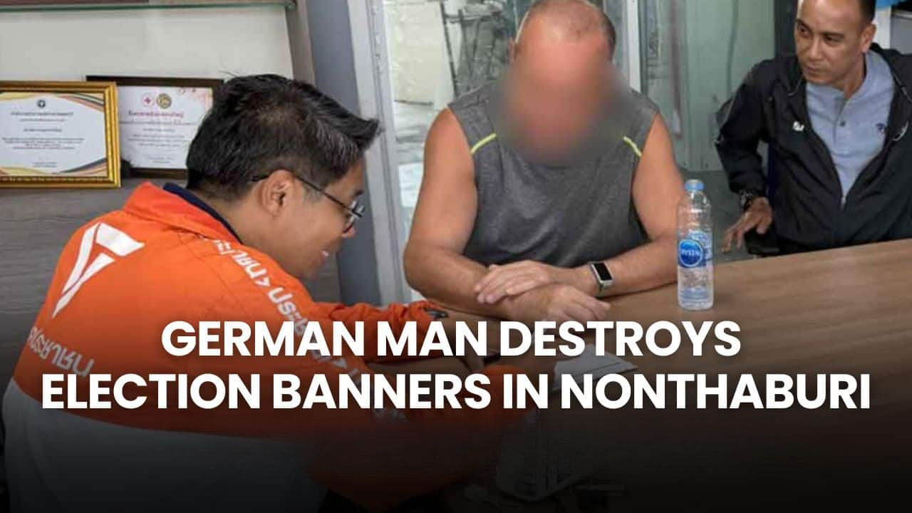 泰国华人网讯 2月4日,泰国诺因他府发生一起特殊事件,一名61岁的德国男子因连续两天破坏政治竞选广告牌被警方拘留,引发公众关注。此事件起因于当地人民党诺因他府第6选区候选人苏塔·米西里的竞选海报遭到破坏。