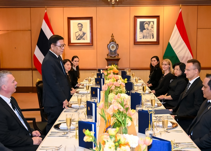 会晤结束后,泰国外交部长为西雅尔多及其代表团举行工作晚宴。泰国高等教育、科学、研究与创新部常务副部长、匈牙利—泰国商会会长以及泰国商会大学校长等相关人士应邀出席。 |