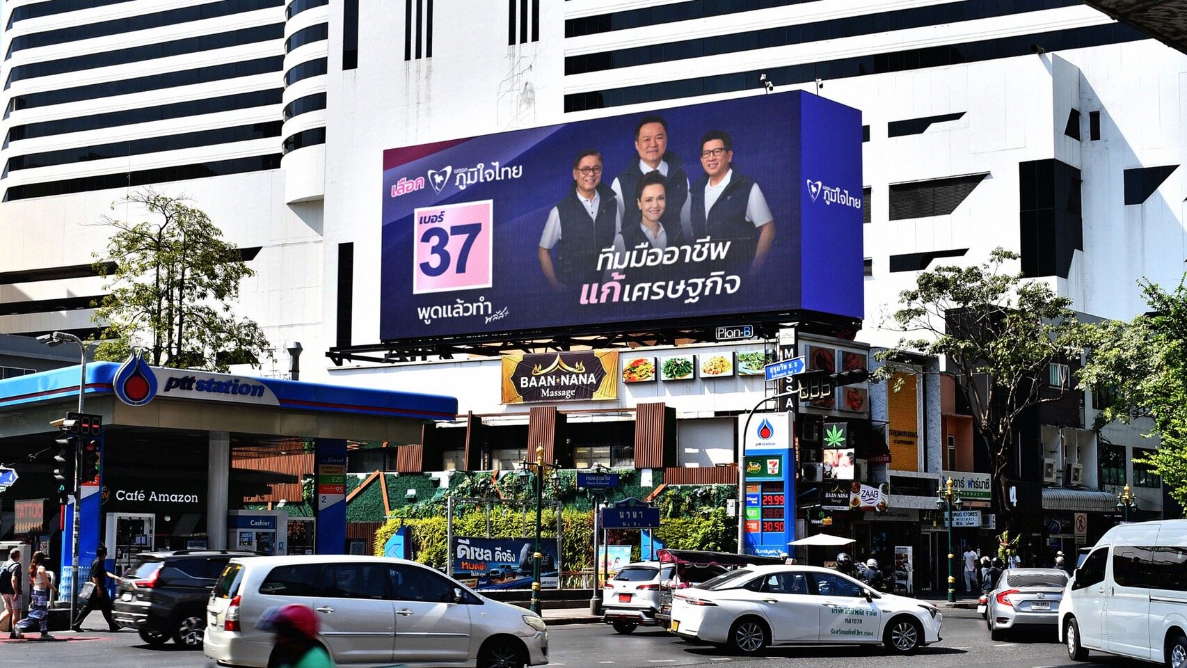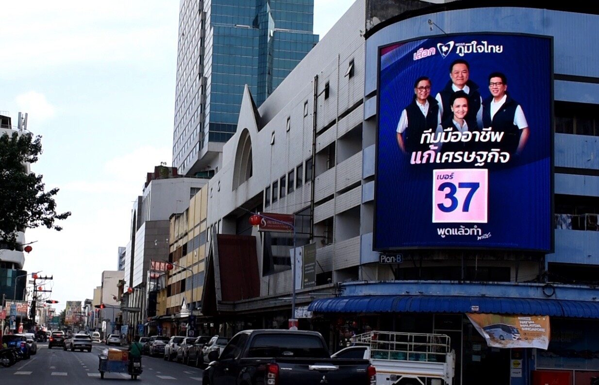 | 泰国华人网讯 随着泰国大选进入最后冲刺阶段,泰自豪党全面推进竞选活动,组织力量深入全国各地开展动员,并在曼谷市中心设立大型广告牌,旨在将党的政策主张与施政成果最大范围地传达给民众。