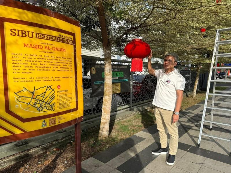 泰国华人网讯 为庆祝农历新年,砂拉越教育、创新及才能发展部副部长安华拉拜近日在诗巫市的Al-Qadim回教堂周围挂上红色大灯笼,为节日增添喜庆氛围,彰显砂拉越独有的多元团结与包容精神。 马来西亚《中国报》报道,安华拉拜在个人社交媒体上表示,诗巫市区的农历新年气氛日益浓厚,而回教堂周边挂灯笼的举措体现了各族群在佳节期间共同庆祝的和谐景象。他同时上传了多张与灯笼合影的照片,并呼吁公众无论宗教或种族,都应一同参与节日庆祝。