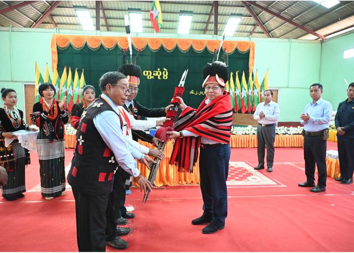 在政治表态方面,敏昂莱大将强调,民选政府虽每五年更迭,但公务员需坚守职责,国防军将始终以国家利益为核心;走民主道路需凝聚全民团结精神,共同维护地区和平稳定与社会经济发展。 会议期间,敏昂莱大将向当地部门官员赠送礼物,那加自治区领导机构为其献上传统头巾、披肩及特色礼品。委员会秘书长叶温乌、联邦部长、实皆省首席部长吴妙觉、西北军区司令及少数民族代表出席会议。 |
