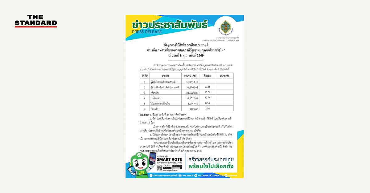 泰国头条新闻社讯 2026年2月28日,泰国选举委员会正式公布2月8日举行的宪法修订公投最终统计结果。在历时近三周的核对与整理后,相关数据于2月27日确认完成。结果显示,超过半数选民支持制定新宪法,修宪议题获得明确多数民意背书。 此次公投共有36,870,302名选民参与投票,占全国52,933,610名拥有选举权公民的69.65%。接近七成的投票率,在近年来泰国全国性投票中属于较高水平,反映出社会各界对宪法议题的高度关注与广泛参与。