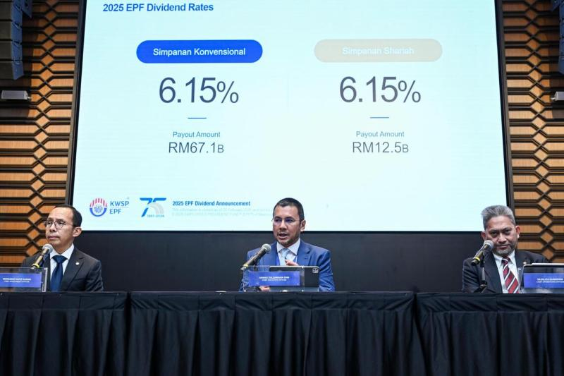 泰国华人网讯 马来西亚雇员公积金局(EPF)于2月28日在雪兰莪州沙亚南总部举行媒体汇报会,宣布2025年度传统储蓄户头及回教储蓄户头派息均为6.15%,略低于2024年的6.3%。 公积金局总执行长阿末祖卡奈表示,派息略低于预期,主要受到两大因素影响:一是马国股票交易所投资收益下降;二是令吉走强导致部分国际资产价值,尤其以美元计价的资产缩水。尽管如此,连续两年派息率仍超过6%,显示公积金运营稳定。