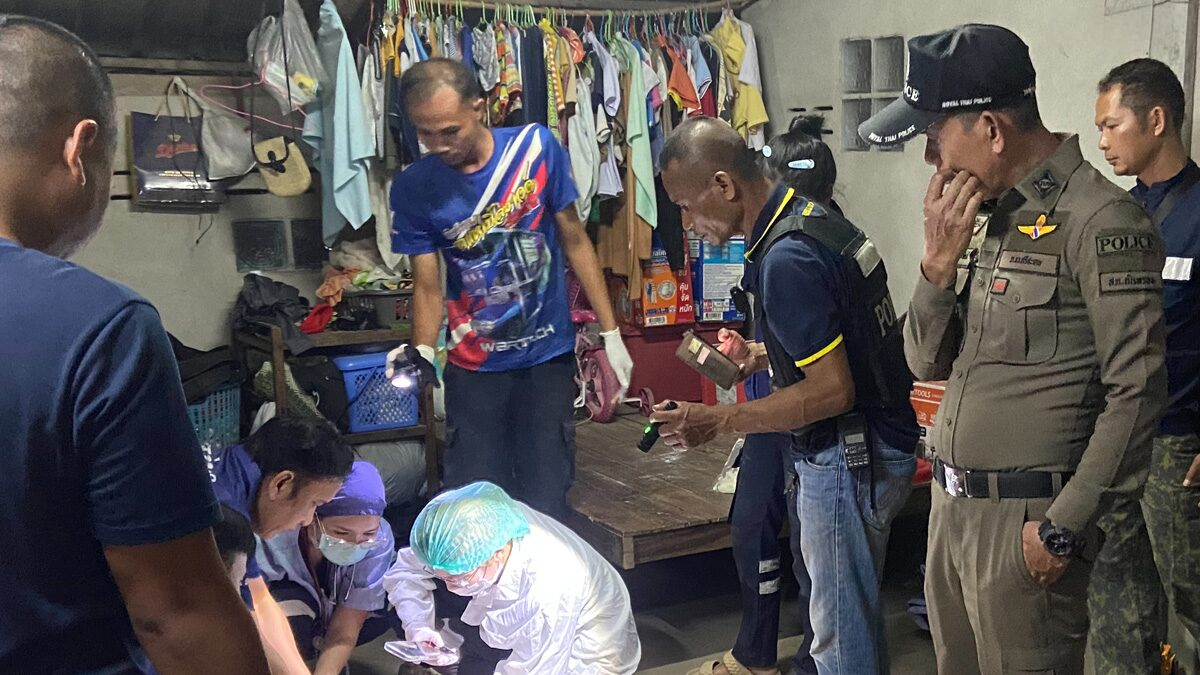 警方正在调查28岁的阿查拉妮·瓦纳通被男友枪杀的现场。据称,她的男友随后开枪自杀,但头部中弹后幸存下来。 警方接报后赶赴位于帕汶区5号村的一栋平房。事发地点为厨房扩建部分的后屋,警方发现女友已身亡,男子重伤。男子头部中枪,现场找到一把改装空包弹枪和一枚9毫米弹壳。女友右小腿及头部中弹,现场散落弹壳两枚。