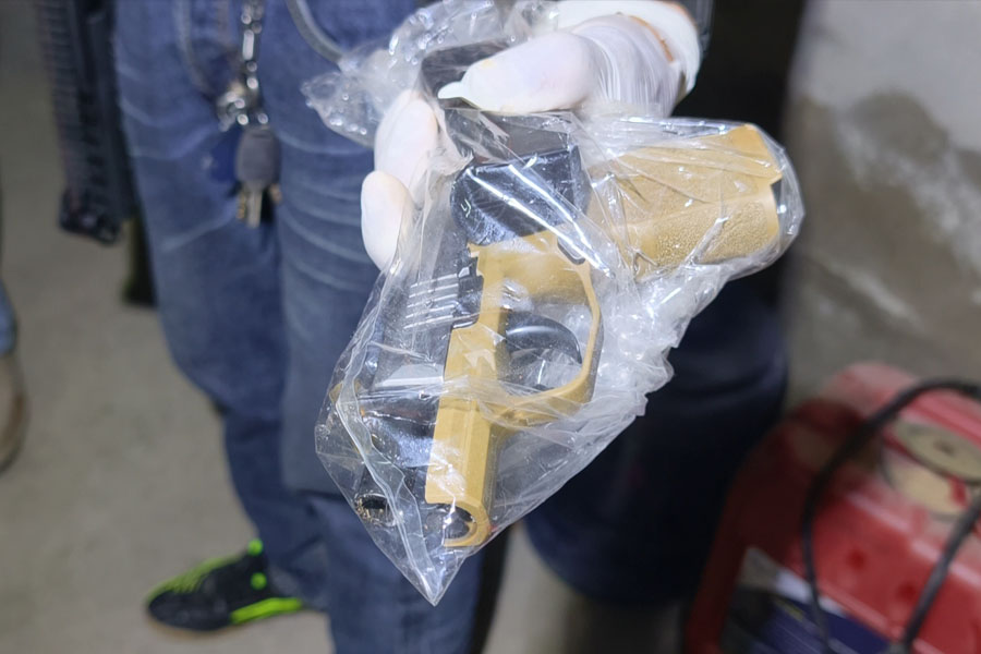 在事发现场发现的改装空包弹枪 阿查拉妮的父亲苏拉蓬·瓦纳通透露,这对情侣交往约三年,育有一子。嫌疑人极度嫉妒女友,经常争吵,甚至威胁全家。近几个月女友曾试图疏远他,当天原计划参加好友婚礼,遭男子反对,导致激烈争吵。