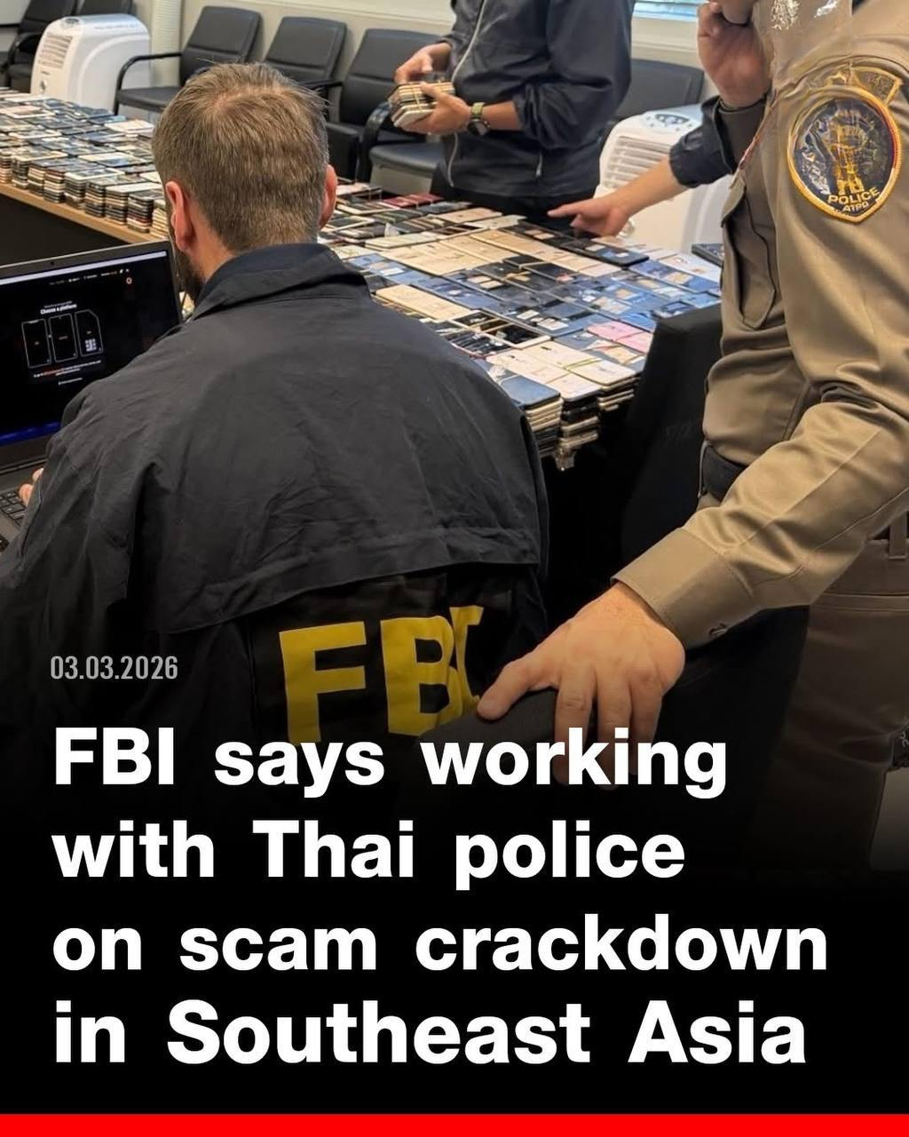 泰国华人网讯 2026年3月4日,泰国华人网讯——美国联邦调查局(FBI)驻曼谷办事处近日在官方社交媒体发布声明称,正与泰国警方及区域执法机构合作,全力打击东南亚诈骗园区。FBI指出,这类跨国诈骗网络已造成数十亿美元损失,受害者遍布全球,对个人财产和金融体系造成严重冲击。声明强调,跨境执法合作仍在持续推进,但未披露具体抓捕或清剿行动细节。
